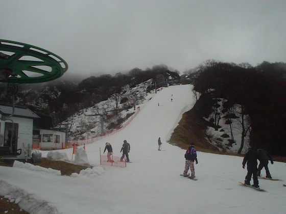 天候は小雨、しかし昨日の雨に比べれば随分快適です。お客さんは雨のせいか少なかったですが、もったいないですね。第10リフトの営業は中間駅まででしたが、雪は思っていたより随分持ちこたえています。スタッフの努力の賜物ですね。今週の寒気南下で積雪があれば、3月いっぱい持ちこたえるのではないでしょうか。今年の奥伊吹はまだまだ楽しませてくれそうです。